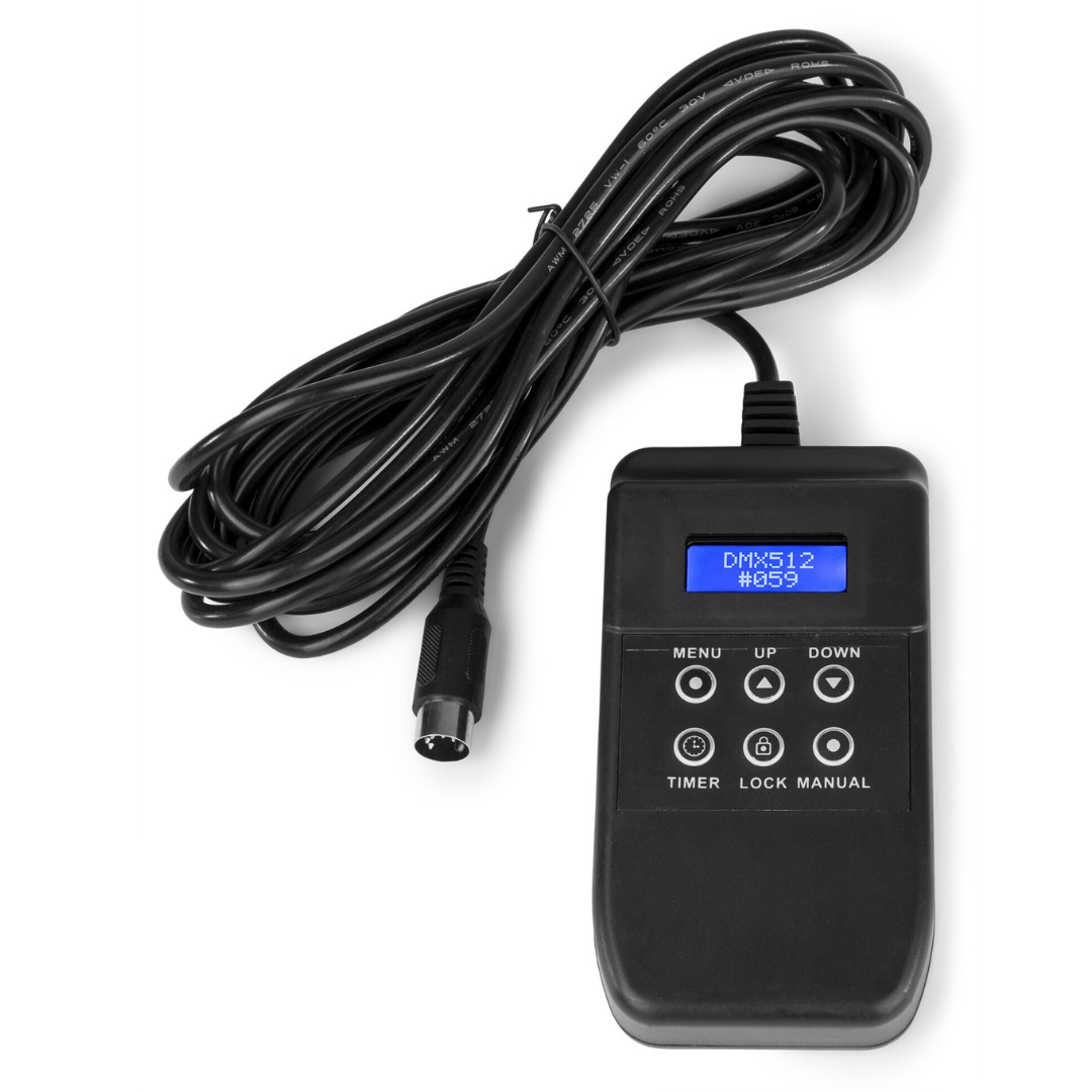 Den har ett värmeelement av hög kvalitet och en rymlig vätskebehållare som gör att du kan köra längre utan påfyllning. I paketet ingår: Rökmaskin (fulltankad) Trådbunden fjärr, trådlös fjärr och strömkabel. Specifikationer: 1800W rökmaskin med 24x 4W 4-i-1 LEDs (Röd/Grön/Blå/Bärnsten) Kan användas både vertikalt och horisontellt Skapar en kraftig, ljussatt rökpelare LED-upplyst tank Inbyggd kontrollpanel med LCD Trådbunden LCD-fjärr med timerfunktion Extra trådlös fjärrkontroll DMX- eller standalone-läge